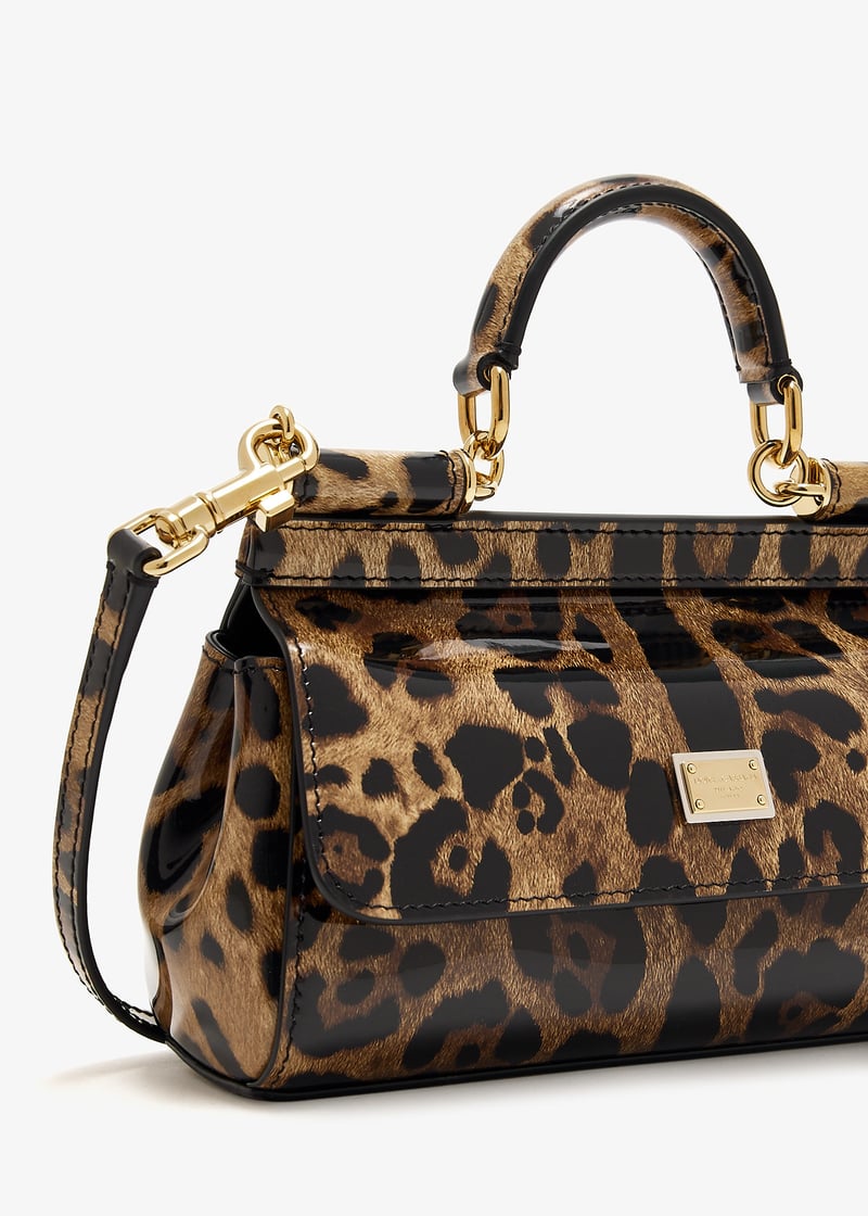 Dolce&Gabbana has revamped its most iconic style, the Sicily, in a new, compact way. Perfect for carrying your mini essentials, it comes in polished calfskin: with a playful leopard print and features a branded plate with two metal plating finishes, a front flap with magnetic fastening, an adjustable, detachable leather strap, and a flat pocket on the inside.