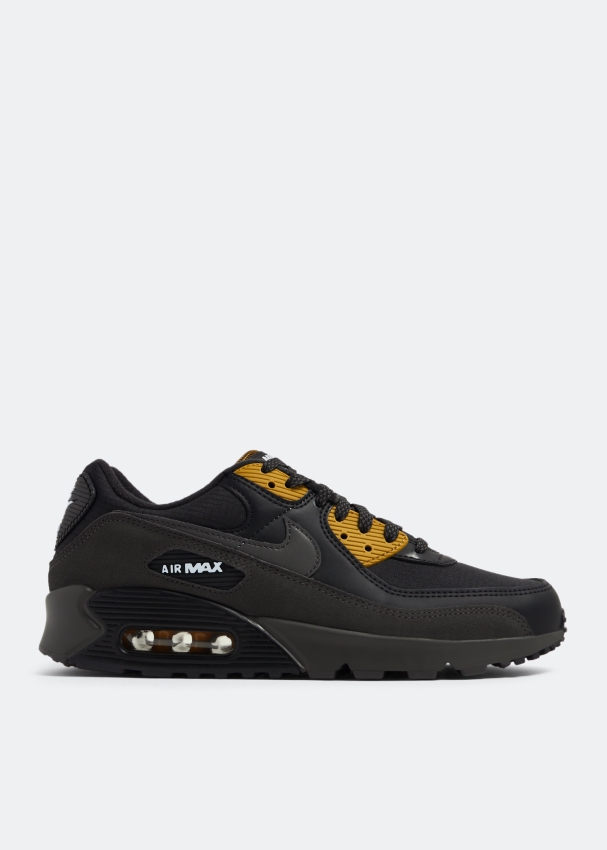 Another must-have rendition of the Air Max 90, Nike presents this classic sneaker in a 'Black/Medium Ash' colourway. They're designed with a neutral hue across the mudguard, leather overlay, and a light nylon base with a grid pattern. Take note of the rubber outsole and a lace-up closure.