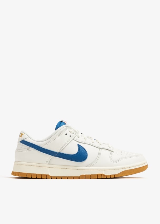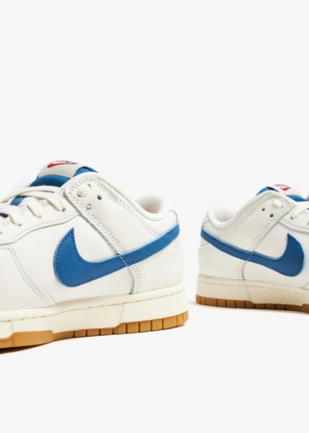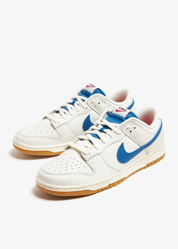 Nike's latest Dunk Low sneakers combine Sail White and Royal Blue premium leather with a contrasting gum outsole for a versatile look. Continuing to be the ultimate streetwear and skater icon, they feature a leather base with contrasting leather overlays, the iconic Swoosh, logo branding, and the classic two-tone rubber sole for added cushioning and durability.