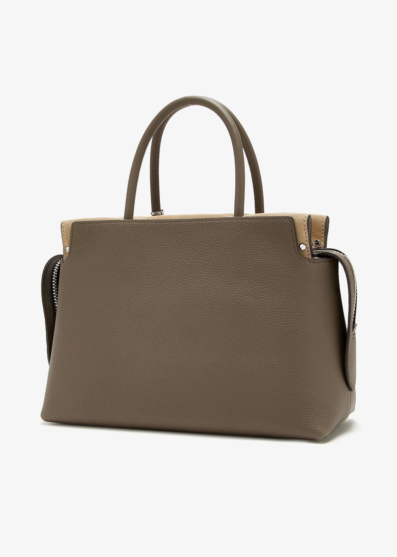 The Mercer pebbled satchel from Tory Burch features a softly deconstructed design with layers of leather and rolled suede. Subtle hardware accents the sleek zippered pockets both inside and out. Carry it by the top handles or opt for hands-free convenience with the removable crossbody strap. It includes one exterior front zipper pocket, one interior zipper pocket, and one interior slit pocket.