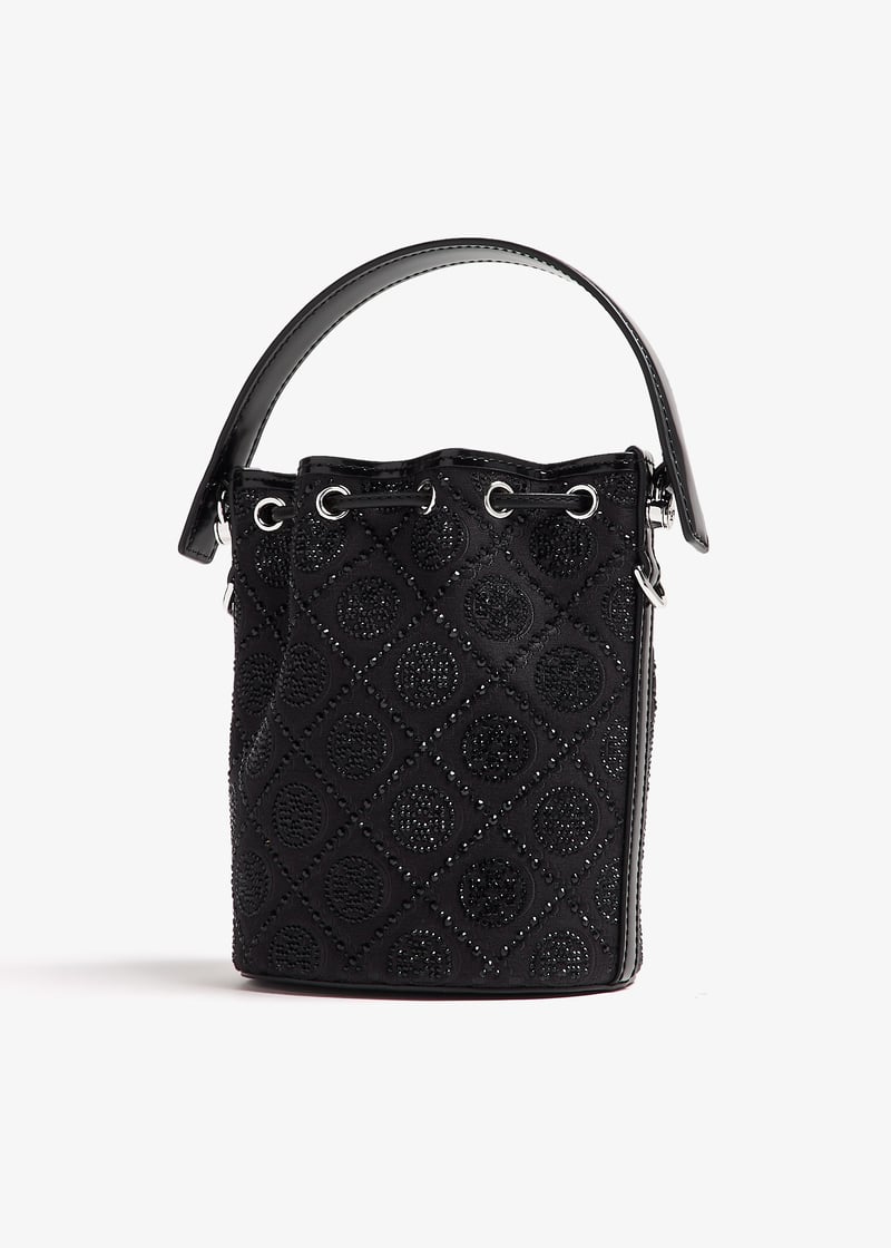 Crafted from smooth-grain Italian leather, the T Monogram bucket bag is a stylish addition to your party collection. Adorned with crystal embellishments in the pattern of the monogram, it features a logo cord stopper for the drawstring closure. Carry it by the top handle or use the shoulder strap for versatile styling options.